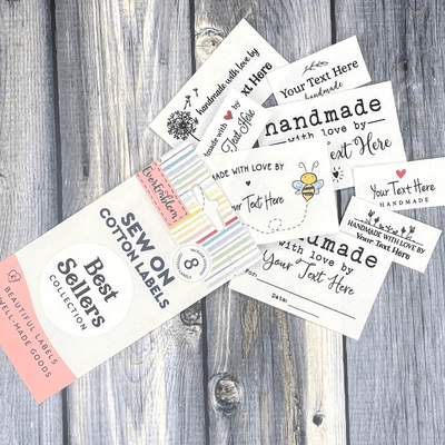 Mixed Label Package - 8 different cotton labels personalized with your text. Font and design will be same as product images.