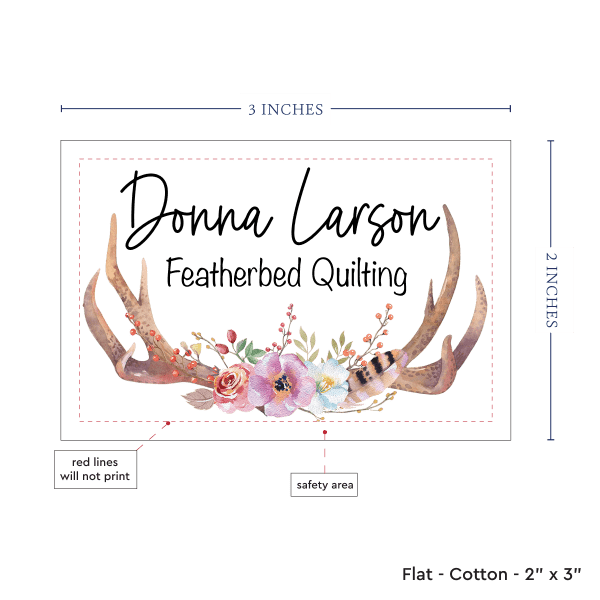 Personalized cotton labels measuring 2”x3”. Available as Flat tags in either sew on or iron on options. See below for full description and to design and preview your custom labels