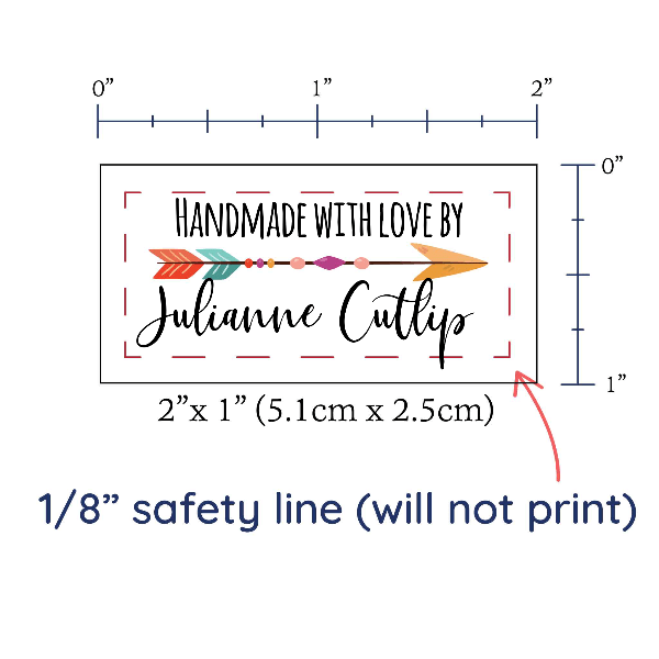 Personalized cotton labels measuring 2”x1”. Available as Flat or Fold Over tags in either sew on or iron on options. See below for full description and to design and preview your custom labels