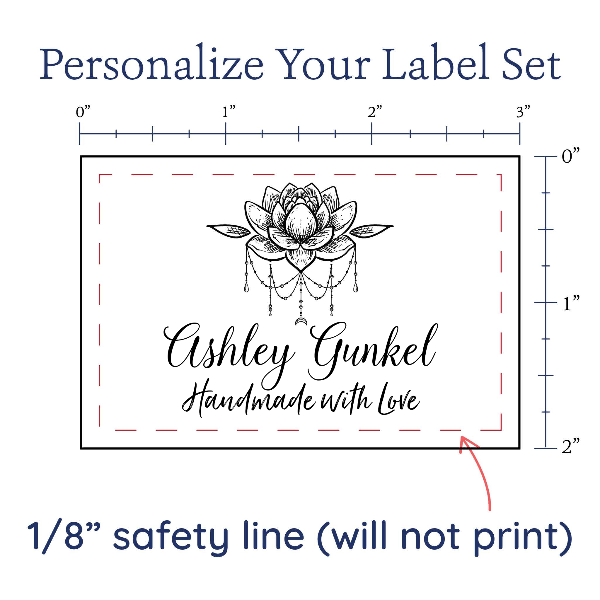 Personalized cotton labels measuring 2”x3”. Available as Flat tags in either sew on or iron on options. See below for full description and to design and preview your custom labels
