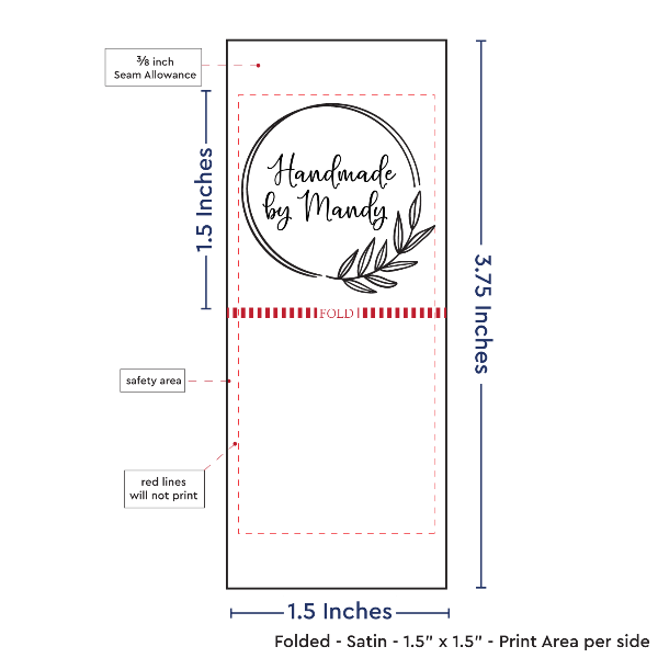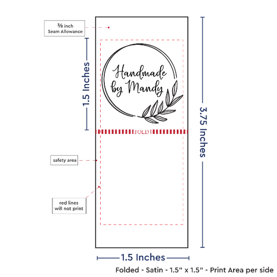 Personalized satin labels measuring 1.5”x1.5” once folded and sewn in. Printed with black ink on white satin ribbon. Cut edges should be sewn into a seam or turned under. See below for full description and to design and preview your custom labels.