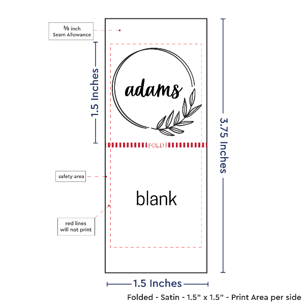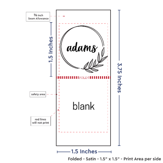 Personalized satin labels measuring 1.5”x1.5” once folded and sewn in. Printed with black ink on white satin ribbon. Cut edges should be sewn into a seam or turned under. See below for full description and to design and preview your custom labels.