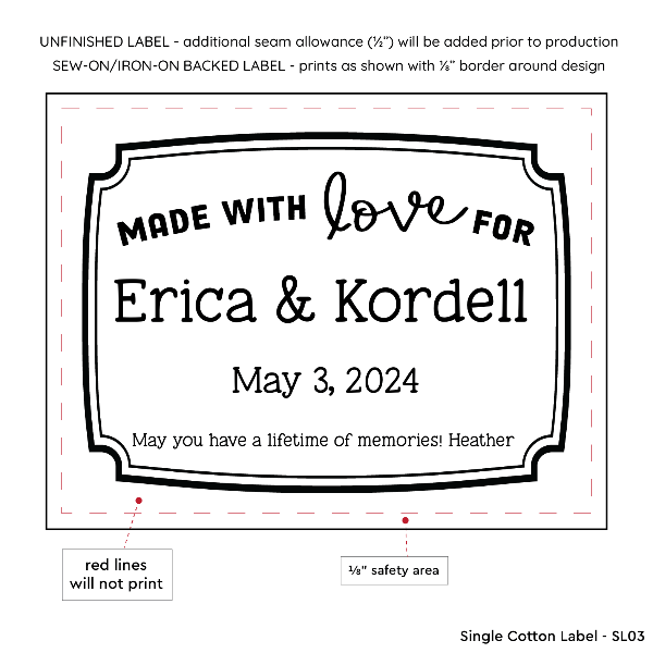 Custom printed single cotton label - See below for full product description