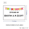 Personalized cotton labels measuring 2”x3”. Available as Flat tags in either sew on or iron on options. See below for full description and to design and preview your custom labels
