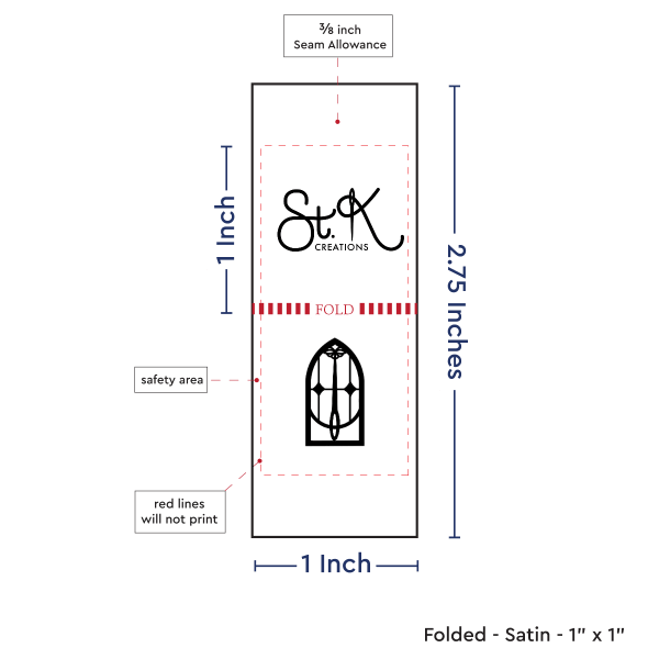 Personalized satin labels. Printed with black ink on white satin ribbon. Cut edges should be sewn into a seam or turned under. See below for full description and to design and preview your custom labels.