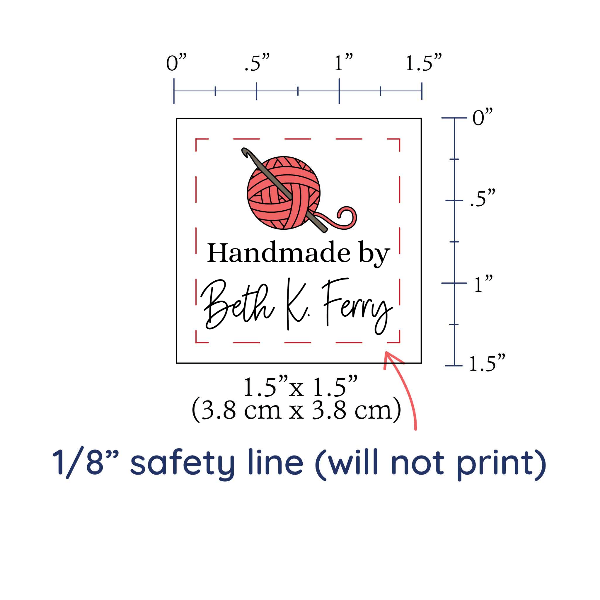 Personalized cotton labels measuring 1.5”x1.5”. Available as Flat or Fold Over tags in either sew on or iron on options. See below for full description and to design and preview your custom labels