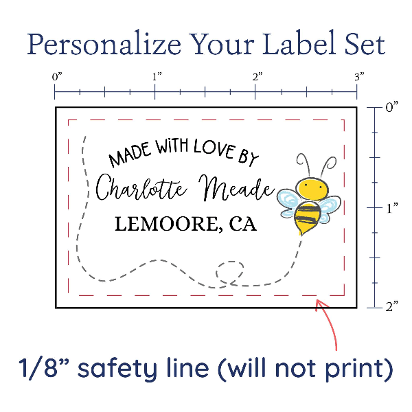 Personalized cotton labels measuring 2”x3”. Available as Flat tags in either sew on or iron on options. See below for full description and to design and preview your custom labels