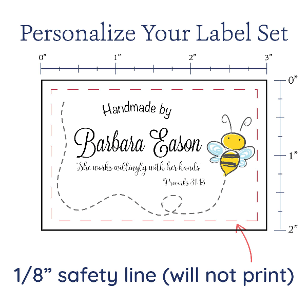 Personalized cotton labels measuring 2”x3”. Available as Flat tags in either sew on or iron on options. See below for full description and to design and preview your custom labels