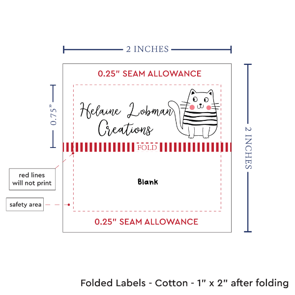 Personalized cotton labels measuring 2”x1”. Available as Flat or Fold Over tags in either sew on or iron on options. See below for full description and to design and preview your custom labels