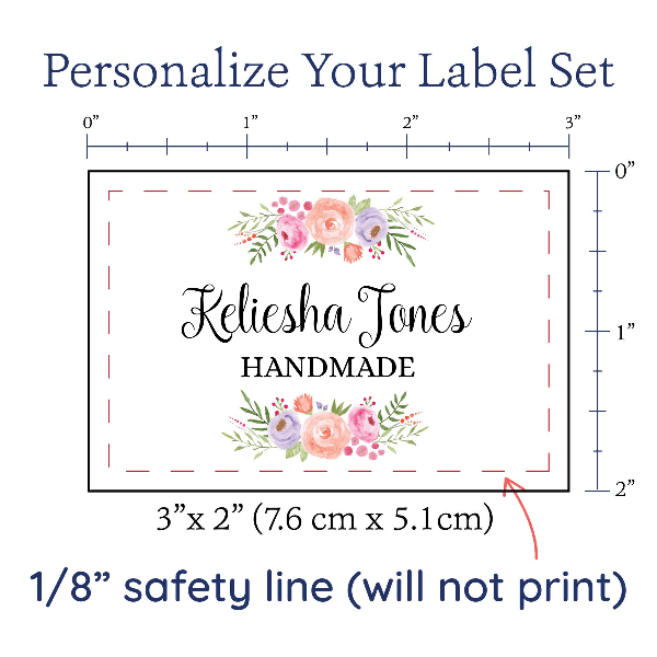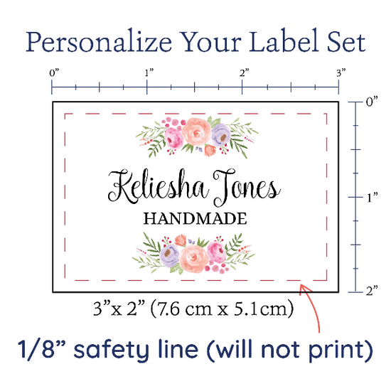 Personalized cotton labels measuring 2”x3”. Available as Flat tags in either sew on or iron on options. See below for full description and to design and preview your custom labels
