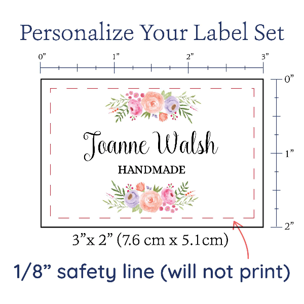 Personalized cotton labels measuring 2”x3”. Available as Flat tags in either sew on or iron on options. See below for full description and to design and preview your custom labels
