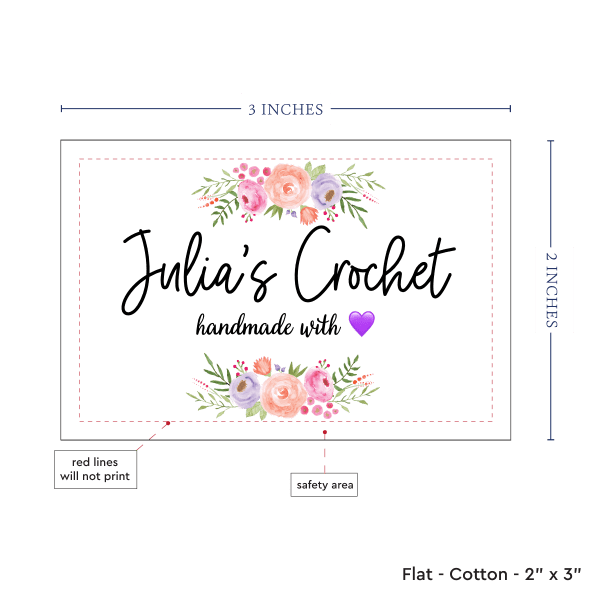 Personalized cotton labels measuring 2”x3”. Available as Flat tags in either sew on or iron on options. See below for full description and to design and preview your custom labels