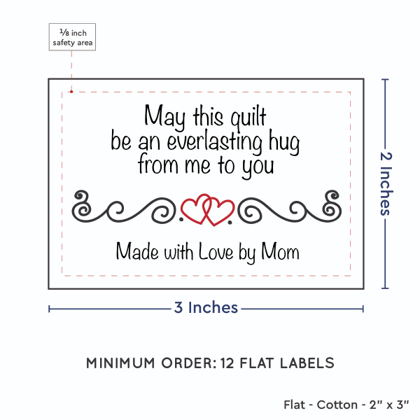 Personalized cotton labels measuring 2”x3”. Available as Flat tags in either sew on or iron on options. See below for full description and to design and preview your custom labels