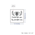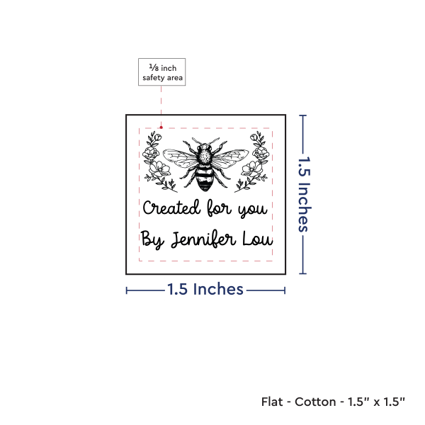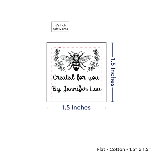 Personalized cotton labels measuring 1.5”x1.5”. Available as Flat or Fold Over tags in either sew on or iron on options. See below for full description and to design and preview your custom labels