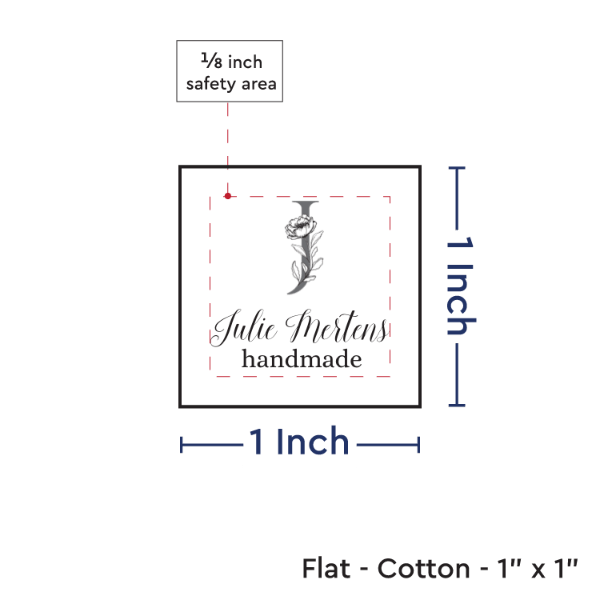 Personalized cotton labels measuring 1”x1”. Available as Flat or Folded labels in either sew on or iron on options. See below for full description and to design and preview your custom labels