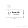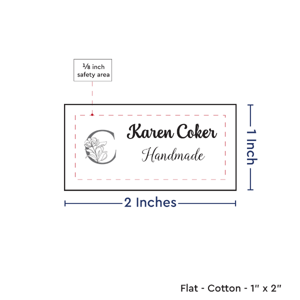Personalized cotton labels measuring 2”x1”. Available as Flat or Fold Over tags in either sew on or iron on options. See below for full description and to design and preview your custom labels