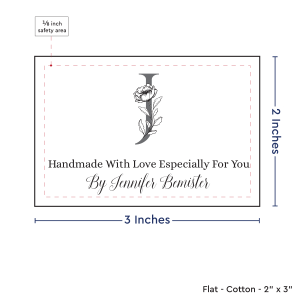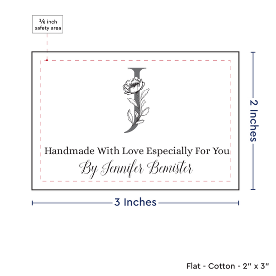Personalized cotton labels measuring 2”x3”. Available as Flat tags in either sew on or iron on options. See below for full description and to design and preview your custom labels