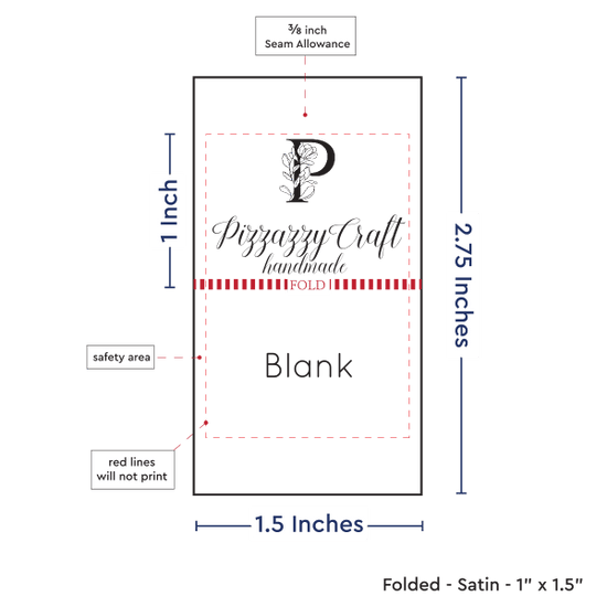 Personalized satin labels measuring 1”x1.5” once folded and sewn in. Printed with black ink on white satin ribbon. Cut edges should be sewn into a seam or turned under. See below for full description and to design and preview your custom labels.