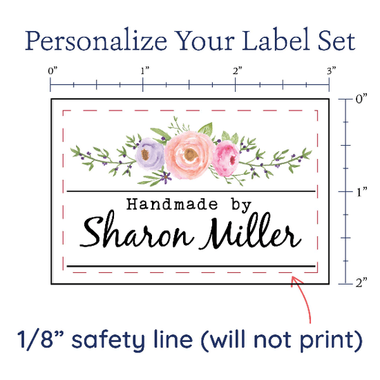 Personalized cotton labels measuring 2”x3”. Available as Flat tags in either sew on or iron on options. See below for full description and to design and preview your custom labels