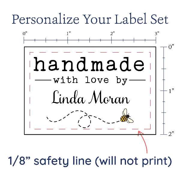 Personalized cotton labels measuring 2”x3”. Available as Flat tags in either sew on or iron on options. See below for full description and to design and preview your custom labels