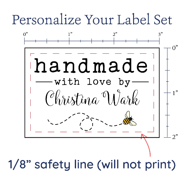 Personalized cotton labels measuring 2”x3”. Available as Flat tags in either sew on or iron on options. See below for full description and to design and preview your custom labels