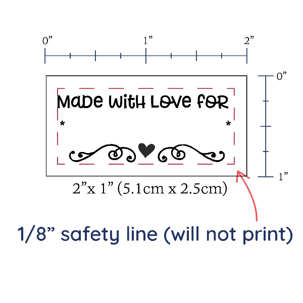 Personalized cotton labels measuring 2”x1”. Available as Flat or Fold Over tags in either sew on or iron on options. See below for full description and to design and preview your custom labels