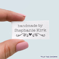 Personalized cotton labels measuring 2”x1”. Available as Flat or Fold Over tags in either sew on or iron on options. See below for full description and to design and preview your custom labels