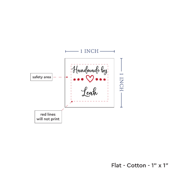 Personalized cotton labels measuring 1”x1”. Available as Flat or Folded labels in either sew on or iron on options. See below for full description and to design and preview your custom labels