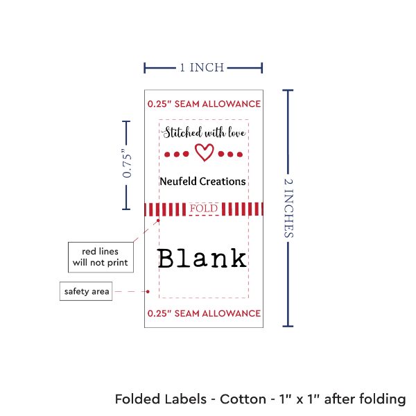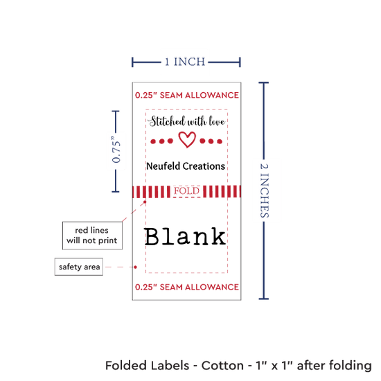Personalized cotton labels measuring 1”x1”. Available as Flat or Folded labels in either sew on or iron on options. See below for full description and to design and preview your custom labels