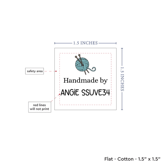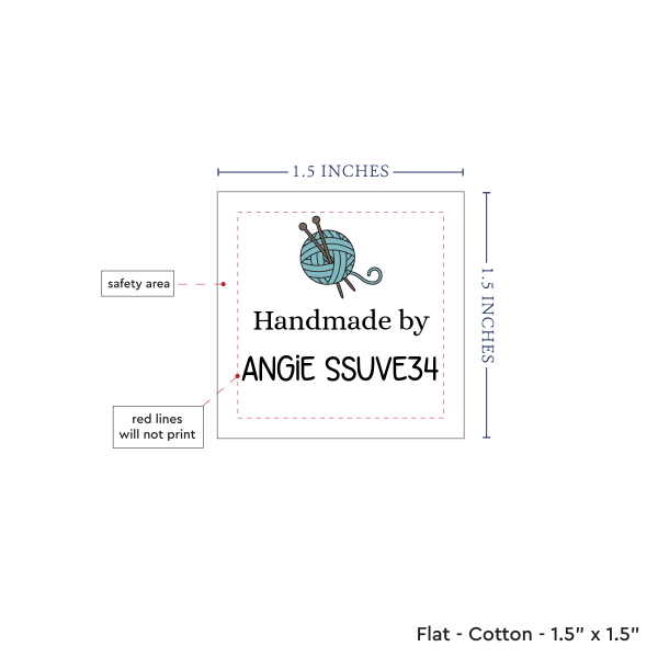 Personalized cotton labels measuring 1.5”x1.5”. Available as Flat or Fold Over tags in either sew on or iron on options. See below for full description and to design and preview your custom labels