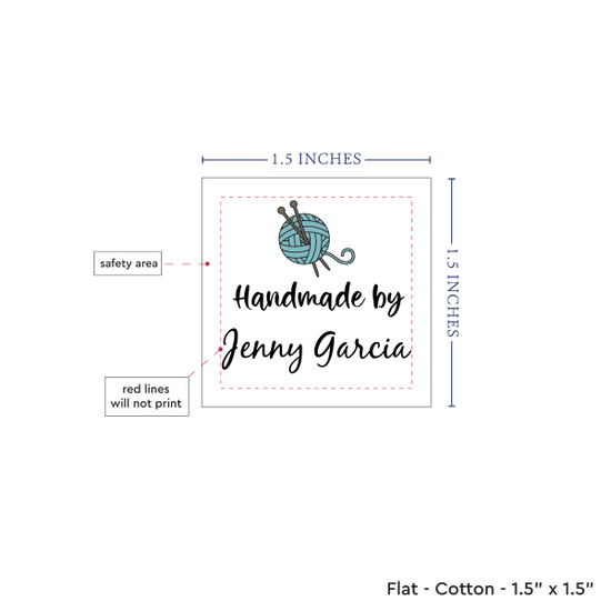 Personalized cotton labels measuring 1.5”x1.5”. Available as Flat or Fold Over tags in either sew on or iron on options. See below for full description and to design and preview your custom labels