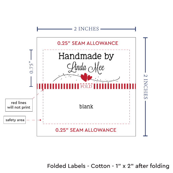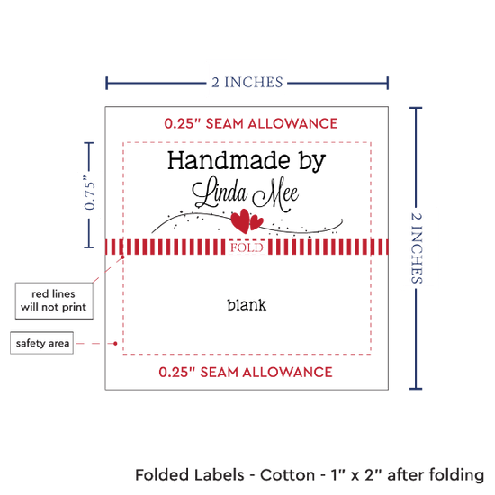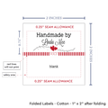 Personalized cotton labels measuring 2”x1”. Available as Flat or Fold Over tags in either sew on or iron on options. See below for full description and to design and preview your custom labels