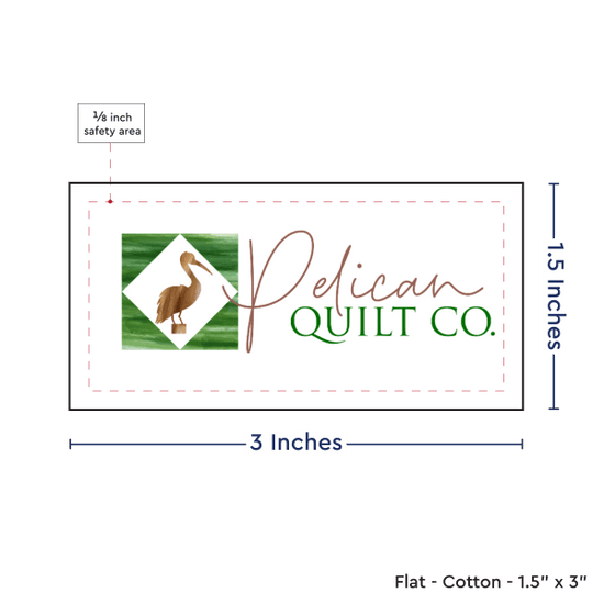 Personalized flat cotton labels printed with your logo or image. See below for full description and to design and preview your custom labels. Click label size to display number of labels per set