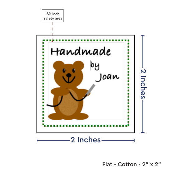 Personalized flat cotton labels printed with your logo or image. See below for full description and to design and preview your custom labels. Click label size to display number of labels per set
