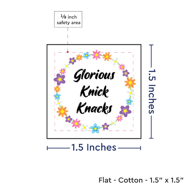Personalized flat cotton labels printed with your logo or image. See below for full description and to design and preview your custom labels. Click label size to display number of labels per set