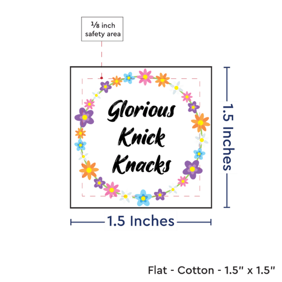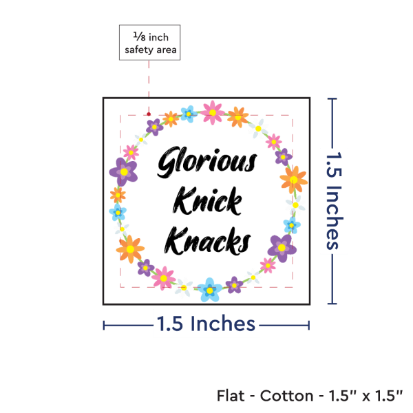 Personalized flat cotton labels printed with your logo or image. See below for full description and to design and preview your custom labels. Click label size to display number of labels per set