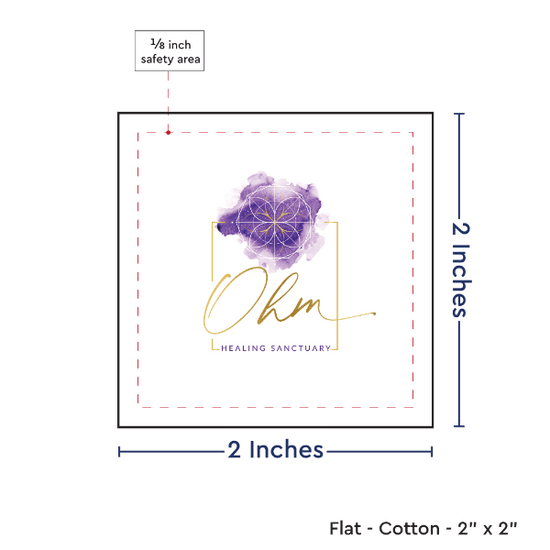Personalized flat cotton labels printed with your logo or image. See below for full description and to design and preview your custom labels. Click label size to display number of labels per set