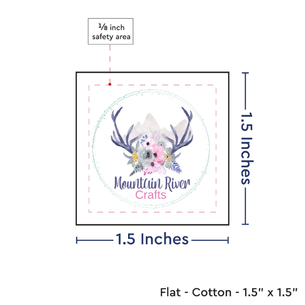 Personalized flat cotton labels printed with your logo or image. See below for full description and to design and preview your custom labels. Click label size to display number of labels per set