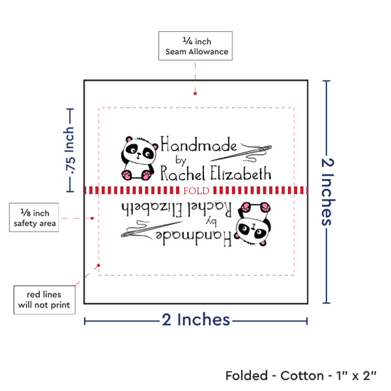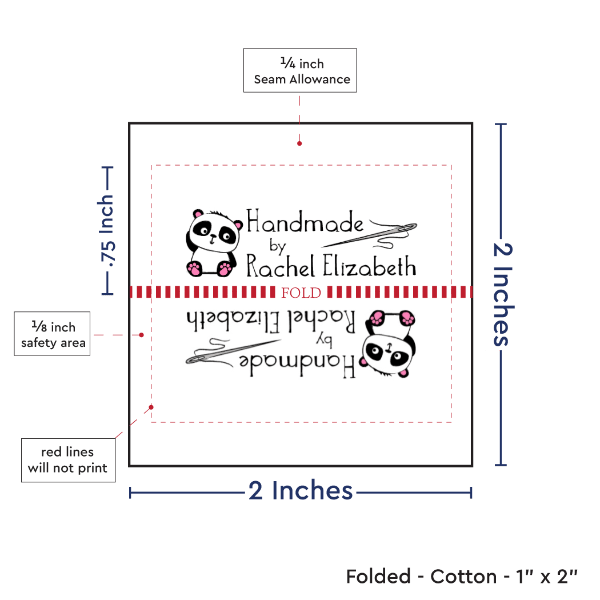 Personalized folding cotton labels printed with your logo or image. See below for full description and to design and preview your custom labels. Click label size to display number of labels per set