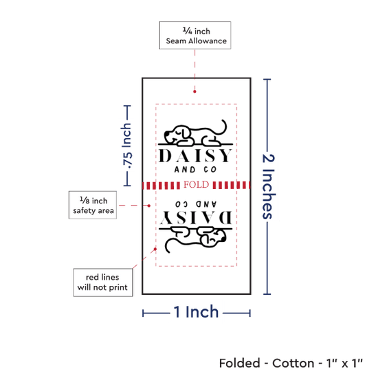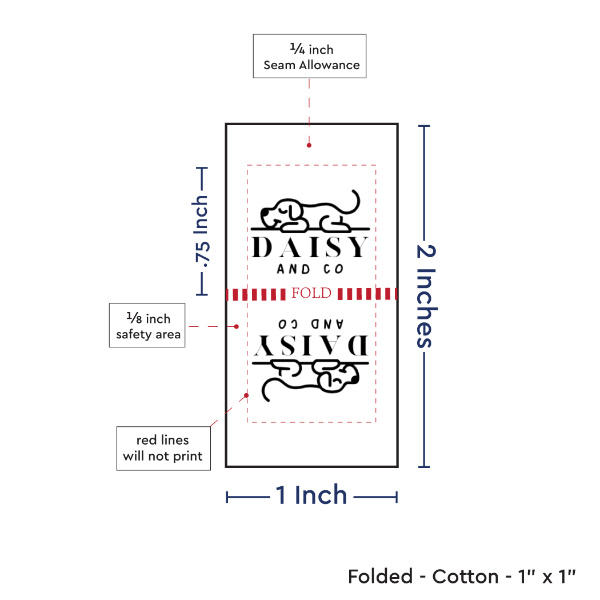 Personalized folding cotton labels printed with your logo or image. See below for full description and to design and preview your custom labels. Click label size to display number of labels per set