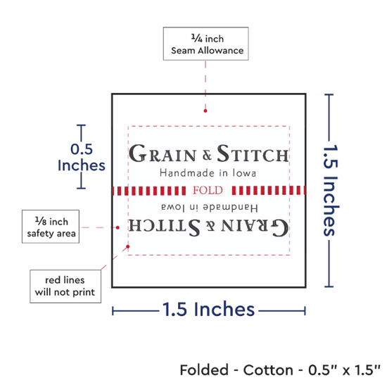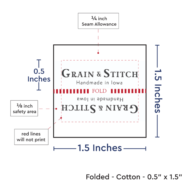 Personalized folding cotton labels printed with your logo or image. See below for full description and to design and preview your custom labels. Click label size to display number of labels per set