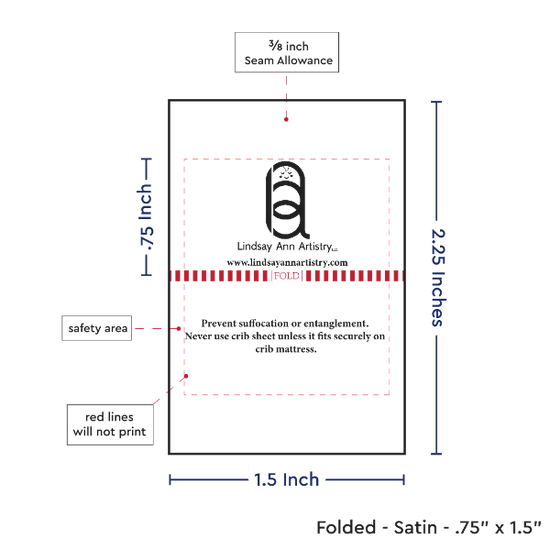 Personalized satin labels. Printed with black ink on white satin ribbon. Cut edges should be sewn into a seam or turned under. See below for full description and to design and preview your custom labels.