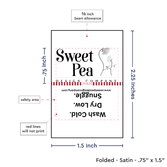 Personalized satin labels. Printed with black ink on white satin ribbon. Cut edges should be sewn into a seam or turned under. See below for full description and to design and preview your custom labels.