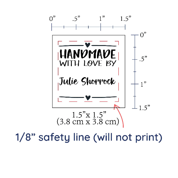 Personalized cotton labels measuring 1.5”x1.5”. Available as Flat or Fold Over tags in either sew on or iron on options. See below for full description and to design and preview your custom labels