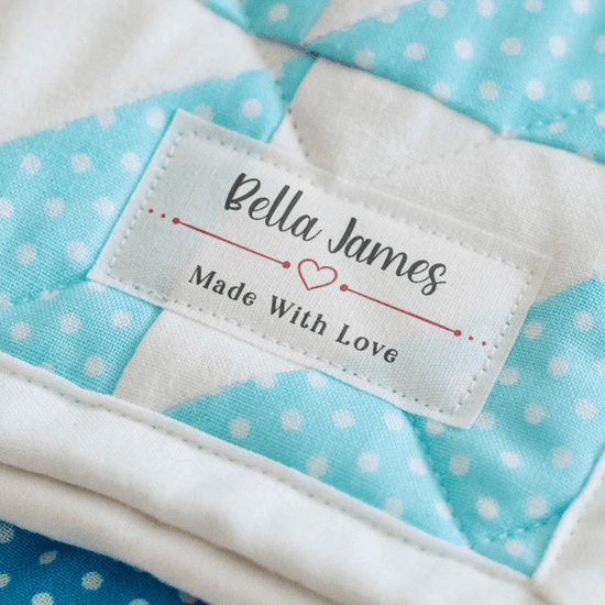 Personalized cotton labels measuring 2”x1”. Available as Flat or Fold Over tags in either sew on or iron on options. See below for full description and to design and preview your custom labels