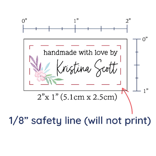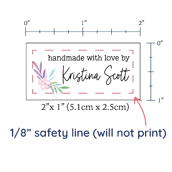 Personalized cotton labels measuring 2”x1”. Available as Flat or Fold Over tags in either sew on or iron on options. See below for full description and to design and preview your custom labels
