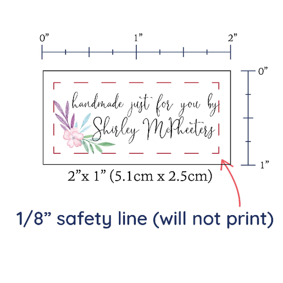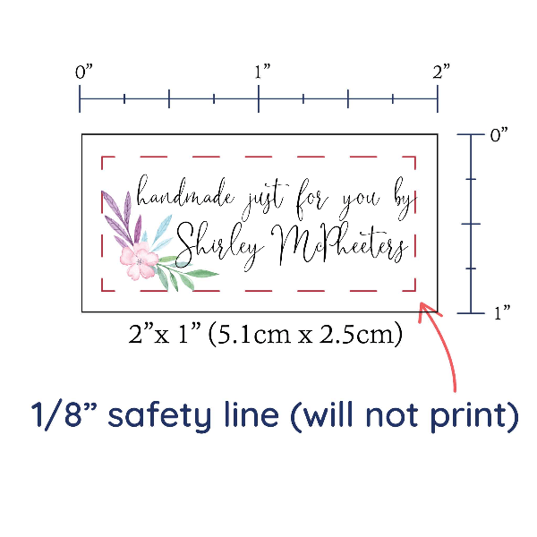 Personalized cotton labels measuring 2”x1”. Available as Flat or Fold Over tags in either sew on or iron on options. See below for full description and to design and preview your custom labels