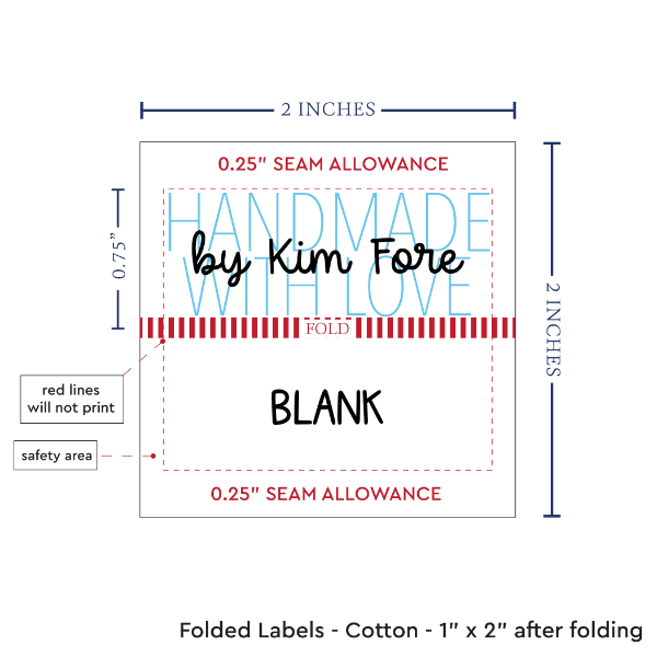 Personalized cotton labels measuring 2”x1”. Available as Flat or Fold Over tags in either sew on or iron on options. See below for full description and to design and preview your custom labels