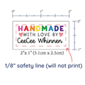 Personalized cotton labels measuring 2”x1”. Available as Flat or Fold Over tags in either sew on or iron on options. See below for full description and to design and preview your custom labels