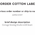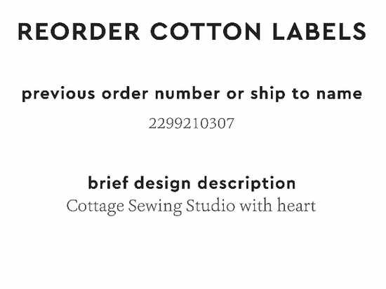 Reorder COTTON Labels previously purchased from EverEmblem. Provide the name the previous order was shipped to for easy reorders